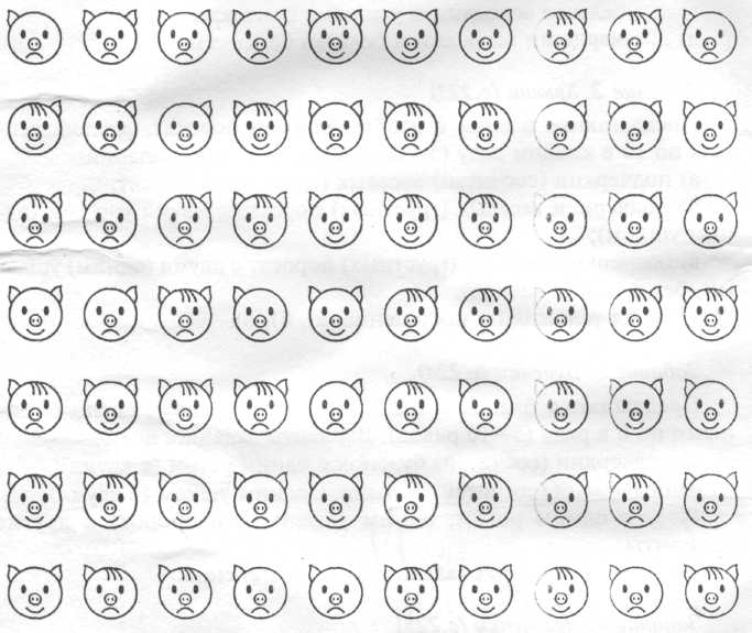 б) підкресли, підрахуй (невеселих, сумних) свинок (з одним вушком);