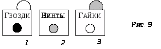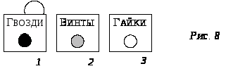 Откроем коробку 1. Допустим, там оказались гайки (рис. 8; а могли быть и винты: рассуждения проводились бы аналогично).