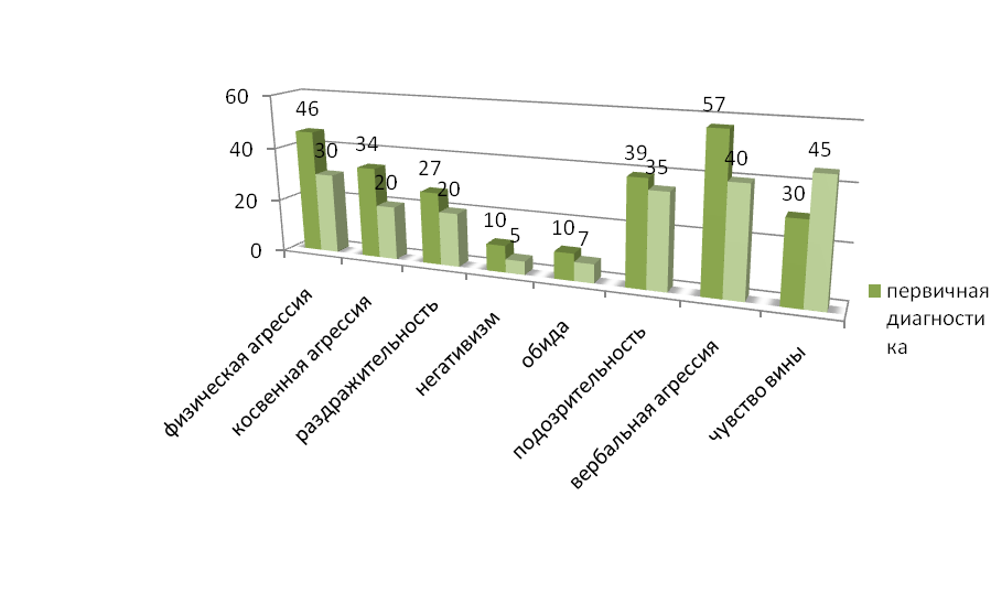 Курс проведенных занятий, направленный на снижение агрессивности, привел к положительным изменениям: в области минимизировал вспыльчивость детей, их обидчивость, мстительность, нетерпимость к мнению других и недоверия к окружающим.