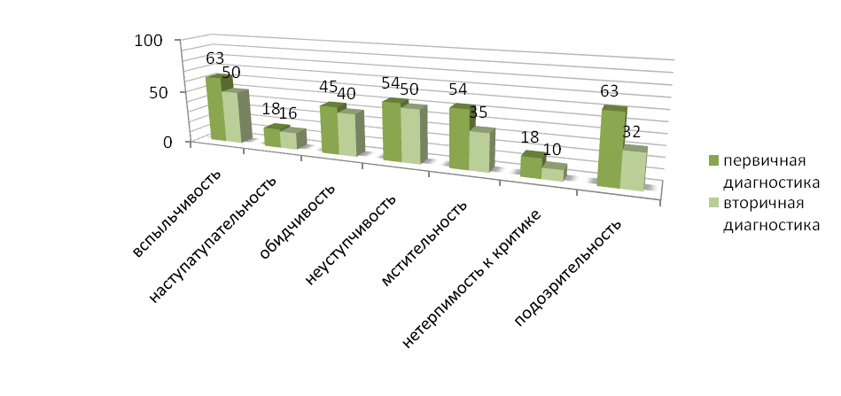 Курс занятий, направленных на снижение агрессивности, привел к положительным изменениям в области минимизации вспыльчивости, обидчивости, мстительности, нетерпимости к мнению других и недоверия к окружающим.