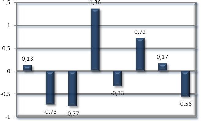 Результаты расчёта варианс СКС также как и эффекты ОКС можно изобразить в виде столбчатой диаграммы (рисунок 3).