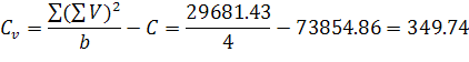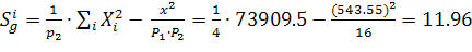 Заключительным этапом анализа комбинационной способности является определение варианс эффектов и различий между эффектами, а также стандартных ошибок. Стандартные ошибки используют для сравнения достоверности определения пределов средних значений и различий между теми или иными эффектами. Варианса случайных отклонений для среднего значения изучаемого признака у любого гибрида будет равна: