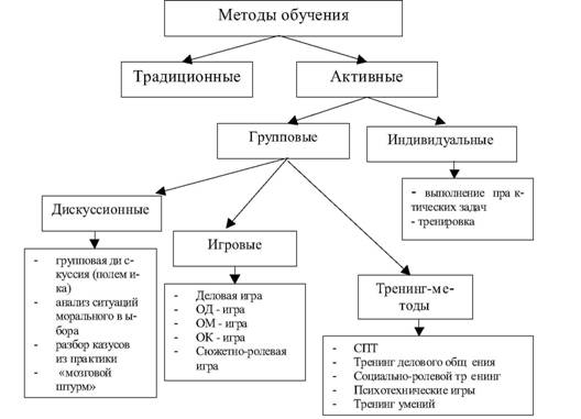 Педагогическая наука и практика предлагают преподавателю богатый арсенал методов и приемов активного социально-психологического обучения. Творческая деятельность преподавателя состоит в том, чтобы рационально использовать в учебном процессе методы, обеспечивающие наилучшее достижение поставленной цели. Разнообразие методов и приемов создает у учащихся интерес к самой учебно-познавательной деятельности, что чрезвычайно важно для выработки мотивированного отношения к учебным занятиям.