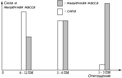 Мышечную массу бодибилдер набирает путем тренировок с отягощениями, подвергая свой организм продуманным стрессовым нагрузкам. Тренировки строятся в соответствии с двумя основополагающими принципами. Первый - принцип изоляции, которому лучше всего соответствуют тренажеры. На тренажере работает только тренируемая мышца (группа мышц), все остальное тело не утомляется понапрасну, а бодибилдер может контролировать нагрузку и прогресс конкретной мышцы. Если бы он тренировал все мышцы одновременно, как в аэробике, то не смог бы точно оценить, какая из них действительно устала, и как ему нагрузить ту, которая работает пока недостаточно. Второй принцип - принцип "шокирования" мышц. Нагрузки должны постоянно расти, а мышцы изнуряться полностью на каждой тренировке. В период восстановления и сна мышцы растут, чтобы приспособиться к увеличенной нагрузке. Если спортсмен высыпается, снабжает организм витаминами и белками для строительства мышц, его физические параметры неуклонно прогрессируют27.