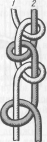 Лівою рукою тримаємо нитку 1, трохи натягуючи. Правою рукою беремо нитку 2, кладемо на нитку 1 і витягуємо її в петлю способом знизу вгору.