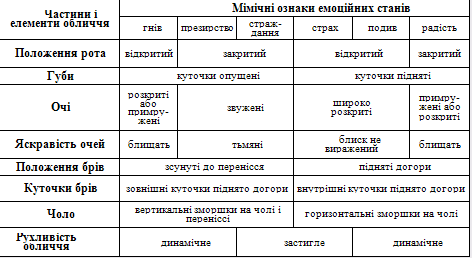 критична налаштованість — відхилення тіла назад, похитування головою, примруження очей; переплетені пальці, погляд з-під лоба;
