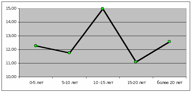 Значения развития психологических барьеров у педагогов с различным стажем работы