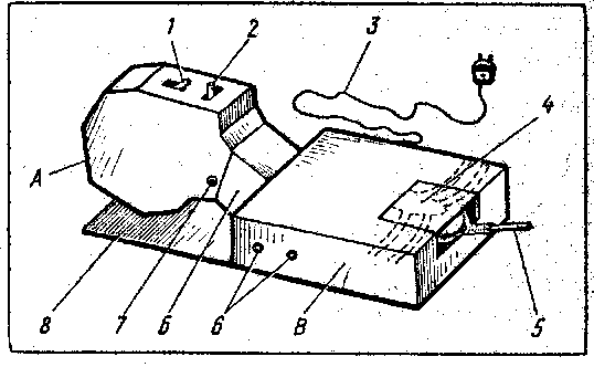 Модель шеи (см. рис.2, Б), Для ее изготовления из фанеры вырезают 4 прямоугольника размером 17X8 см (2 боковые, передняя и задняя стенки модели шеи). Их скрепляют с. помощью брусочков и гвоздиков. Затем в затылочной части модели шеи вырезают отверстие диаметром 1 см, через которое при сборке тренажера пропускают резиновую трубку, имитирующую трахею. Такое положение контроля, например водяные манометры, модель кровообращения и т.д.