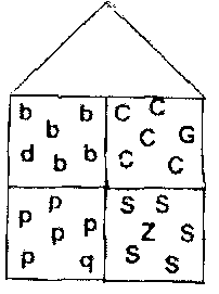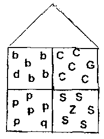 б) У будинку в кожній кімнаті живуть букви-близнюки. А які букви не