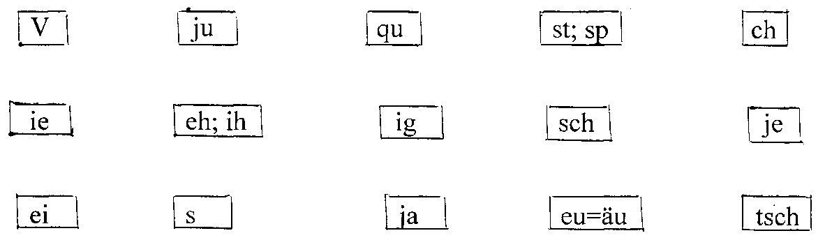 а) Вчитель показує картинку, учні називають українською, що це. Далі вчитель перевертає картинку, на звороті написано (різним кольорами, за принципом "кольорового" навчання) це слово німецькою, та приклади речень з ним. Вчитель пояснює читання даних слів. Учні вже ознайомлені на попередніх уроках з принципами "кольорового" читання.