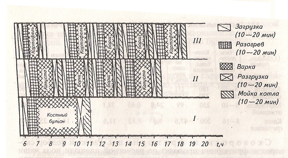 По горячему цеху следует описать организацию технологического процесса с указанием основных технологических линий изготовления блюд (супов, бульонов, вторых горячих, сладких блюд и горячих напитков). По холодному цеху следует привести организацию технологического процесса с указанием основных технологических линий изготовления холодных блюд и закусок. По кондитерскому (мучному) цеху охарактеризовать организацию технологического процесса с указанием основных технологических линий изготовления изделий из всех видов теста: дрожжевого, слоёного, песочного, бисквитного, заварного и др.