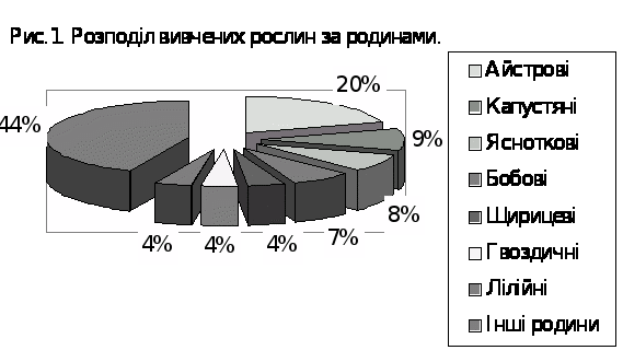 Тому в таблицю 1 включені декоративні рослини і бур'яни, що супроводжують їх на клумбах.