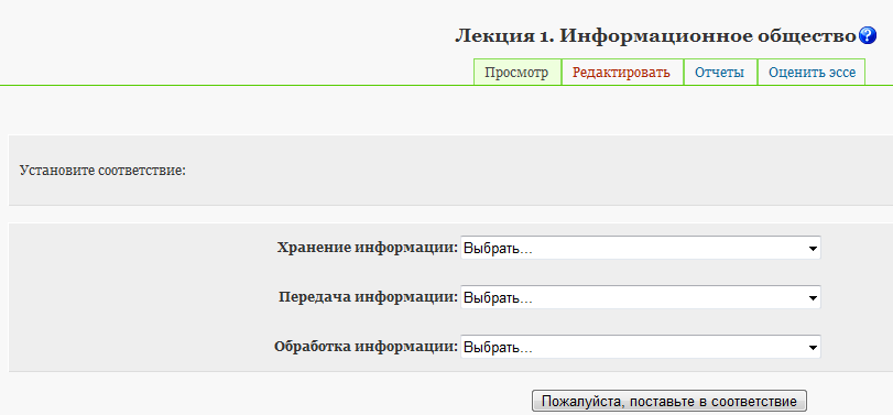 §2.2 Электронный курс раздела «Информационная деятельность человека» предмета «Информатика и ИКТ», разработанный на базе СДО «Moodle»