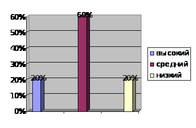 Таким образом, проведенное исследование показало (рис 4), что: высокий уровень развития мышления у детей шестого года жизни посредством занимательных задач наблюдается у 20% детей; средний уровень - у 60% детей; низкий уровень - у 20% детей.