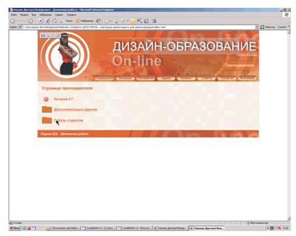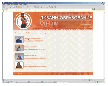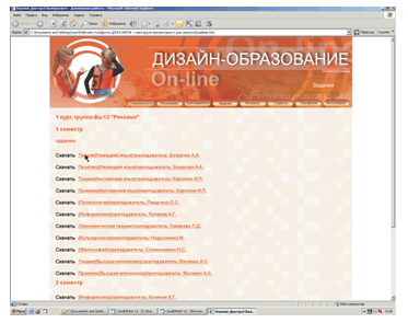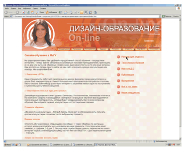 Предмет исследования: Дизайн образовательной on-line оболочки кафедры рекламы и художественного проектирования.