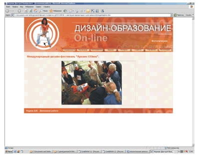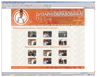 Мы перешли на страницу «фотогаларея» (рис 1.16.) на ней находятся фотографии с различных поездок студентов, фотографии после выпускных, и просто фотографии как отдыхают студенты. Пример: на странице располагаются фотографии с дизайн-фестивалей «Аркаим ХХI век.» - 2006 г. и 2007 г.