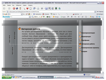 Идеей этого варианта сайта является демонстрирование функциональности навигации сайта и технологии он-лайн обучения.