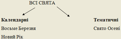 У будь-якому святі присутні різноманітні види діяльності – це і музична, і мовна, і образотворча. Також слід виділити особливий вид діяльності – спілкування.