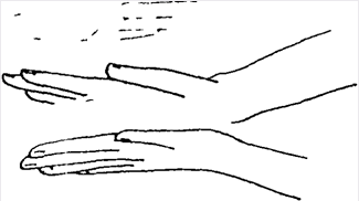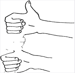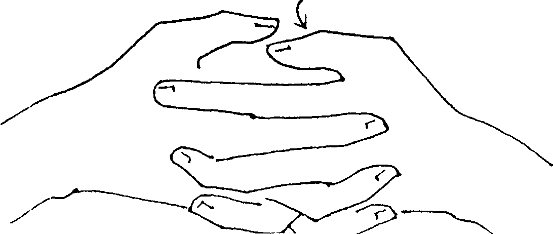 Потом на тыльную сторону правой руки нажимают пальцы левой руки и в петушиный гребешок превращаются пальца правой руки.