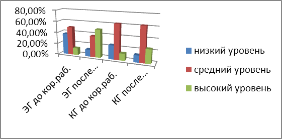 Результаты проведенных обследований переводились в проценты для сравнения полученных данных до и после проведения формирующего эксперимента.