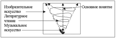 Рис. 2. Спиралевидная форма организации содержания интегрированного урока (блока)