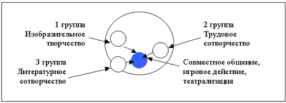 Индивидуально-дифференцированная (творческая) форма – самая сложная форма организации интегрированного занятия. Ее подготовка и реализация требуют высокого профессионализма педагога (см приложение E, рис. 5): дети самостоятельно избирают деятельность, организуют вокруг себя предметное пространство и общение. Учителю важно научиться переводить ребенка из одного вида деятельности в другой, способствуя развитию его потенциальных возможностей. Средством перевода является продукт, созданный ребенком. Например, из рисунков можно создать композицию, придумать и поиграть в сказку, создать постройку, изучить и обсчитать ее математически и др. Интеграция содержания позволяет учащимся увидеть целостно изучаемый объект и творчески самореализоваться. Например, при проведении урока-сказки по теме «Сказки А.С. Пушкина» учитель предлагает различные задания: нарисовать только героев сказки, нарисовать только декорации, сделать декорации из различного природного материала, сочинить для постановки свою сказку по мотивам сказок А.С. Пушкина и т.п. Каждый учащийся решает, в какой группе он будет работать, при этом после представления своей работы он может переключиться на другой вид деятельности, например инсценирование сказки и т.д. Такая форма организации образовательного процесса требует от учителя глубоких знаний индивидуальных особенностей детей, умения объединять их в дифференцированные подгруппы. Более высокого порядка является интеграция содержания различных дисциплин. Здесь речь идет об интегрированных курсах. В учебные планы начальной школы уже введены и проходят апробацию интегрированные курсы по окружающему миру, народоведению, развитию творческих способностей, обобщенные курсы «Мастерская слова», «Грамота» (математика, язык), рассматриваются вопросы интегрированного построения предметов «Художественная культура» и т.д. С нашей точки зрения, отбор и структурирование содержания интегрированных курсов позволяют создать условия для того, чтобы к концу обучения дети не только владели суммой знаний, но и умело оперировали связями между ними. Очевидно, что представление знаний о природе, человеке и обществе в их взаимосвязях расширяет не только развивающие и образовательные возможности курса, но и его воспитательные возможности.