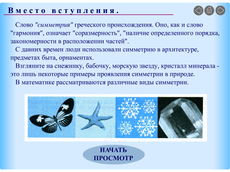 Изучение возможностей использования компьютерных средств в обучении, а также классификации компьютерных средств позволили определить выбор программного продукта для разработки представленного мультимедийного пособия, а анализ учебников школьного курса геометрии определил его структуру и содержание.
