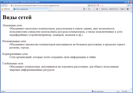 В приложении 3 размещена презентация темы «Создание списков в html- документе».