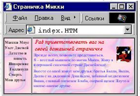 Пусть в левом окне откроется документ menu.htm, а в правом - Mikky.html: