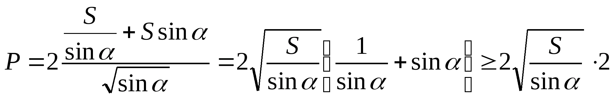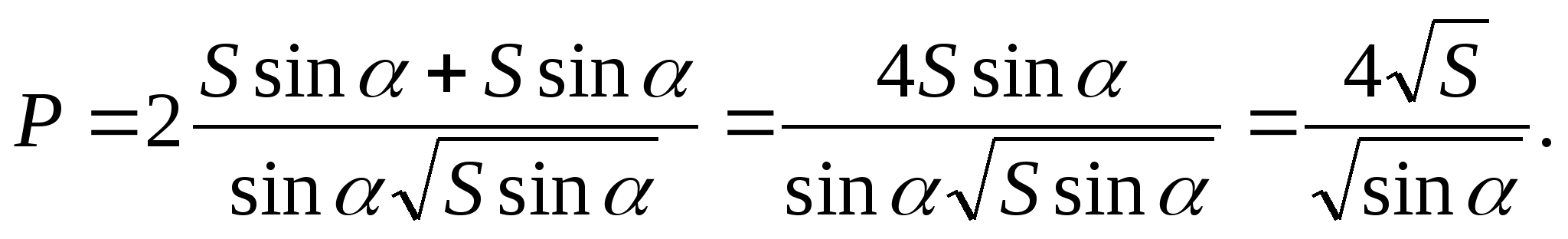 Найти длину боковой стороны трапеции имеющей наименьший периметр среди всех равнобедренных трапеций с заданной площадью, углом между боковой стороной и нижним основанием.