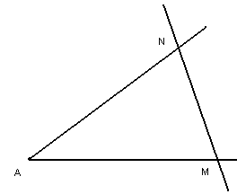 На плоскости нарисован угол A<900, внутри него задана точка М. Укажите на сторонах угла такие точки В и С, чтобы выполнялись условия: АВ = АС и сумма МВ+МС принимала наименьшее значение.