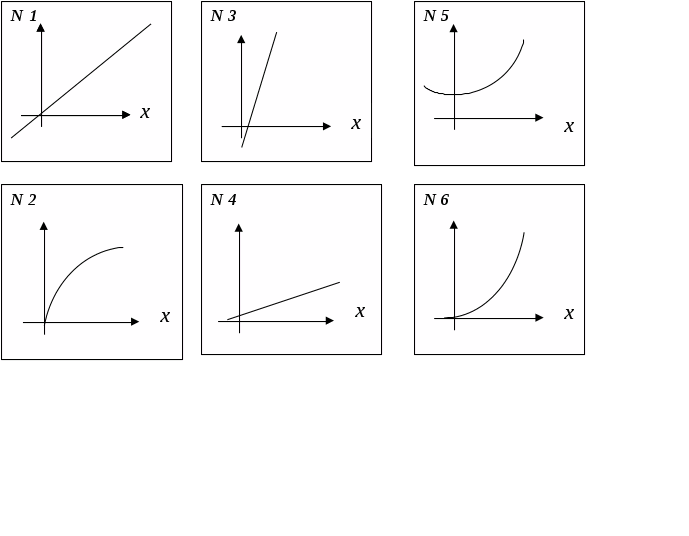 Задание 2.7. На каких из данных графиков можно изобразить зависимость количества символов и ♫ от n, если n откладывается по оси x (укажи номер графика):