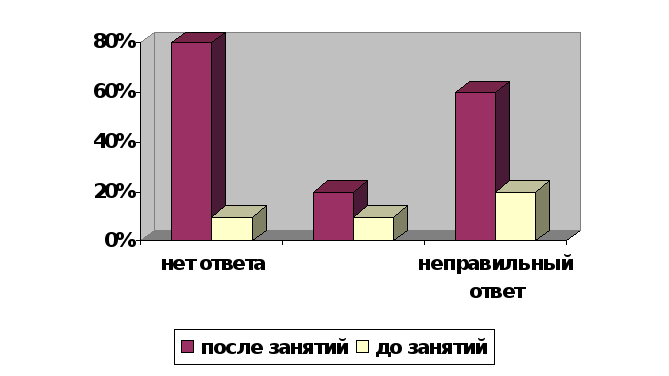 Проведенное нами экспериментальное исследование показало, что после проведения с детьми занятий по формированию природоведческих знаний, уровень знаний детей о растительном и животном мире Забайкалья существенно повысился, что наглядно видно в представленных диаграммах.