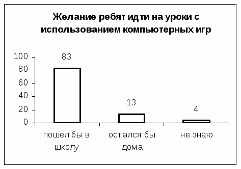 «Если бы завтра был урок математики с использованием компьютерных игр, а учитель сказал, что в школу не обязательно приходить всем ученикам, желающие могут остаться дома, ты пошел бы в школу или остался дома?»