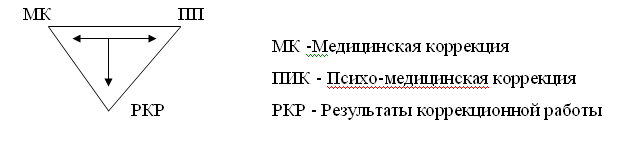 Тесно связанная коррекционно-педагогическая и медицинская коррекция разрабатывает и предопределяет процесс преодоления недостатков психофизического развития, содержание и средства коррекции. Многие требования офтальмологии и гигиены зрения пронизывают учебно-воспитательный процесс, так же несут в себе корректирующие задачи. Наряду с этим у детей с нарушением зрения имеется острая потребность в комплексном медицинском воздействии, т.к. глазные заболевания чаще всего сопровождаются общим ослаблением состояния здоровья детей, поэтому понятие коррекционной работы многогранно.