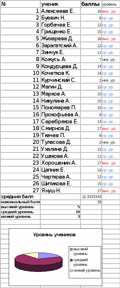 Таблица с обработанными результатами диагностики «Четвертый лишний».
