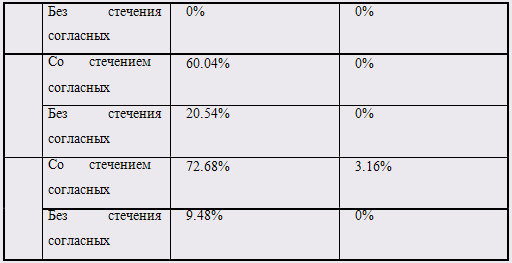 Т.о. можно предположить, что учет специфических особенностей воспроизведения звукослоговой структуры у детей со стертой дизартрией при проведении коррекционно-логопедической работы с учетом уровня сформированности звукослоговой структуры у данной категории детей позволит повысить эффективность устранения нарушения звукослоговой структуры.
