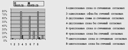 Звукослоговая структура слов у испытуемых экспериментальной группы сформирована недостаточно.