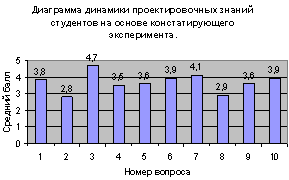Рисунок 1. Диаграмма динамики проектировочных знаний, выявленных в процессе констатирующего эксперимента.