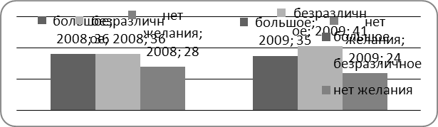 В данном исследовании настораживает то, что многие дети отмечают уже до занятий, что они мало отдохнули (надо заменить, что обследования проводились после выходного дня). Почти все дети, которые пришли в школу с хорошим настроением сохраняют его и после занятий. К сожалению, детей, пришедших в школу с большим желанием учиться, стало меньше (64% 2008 г. и 57 % в 2009 г.). А к концу дня этот показатель и снижается. Имеются дети, которые приходят в школу, испытывая недомогание. Хорошую переносимость занятий отмечают 50%детей, а остальные - удовлетворительную. А в 2009 г. 2 % детей отметили плохую переносимость занятий.