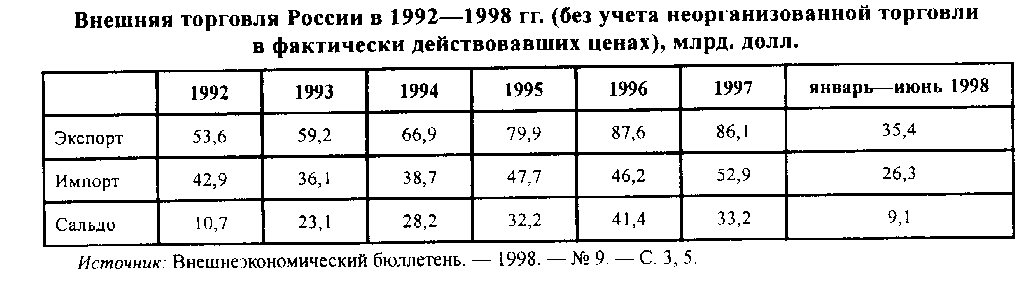 Источник: Ю. Шишков Россия в глобализируемой системе международных хозяйственных связей // РЭЖ № 10 1998 г., с. 84