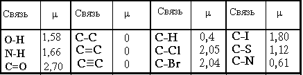 Значения дипольных моментов для некоторых связей между разнородными атомами приведены в таблице:
