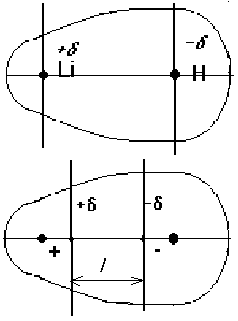 Принимаем e равным заряду электрона(1,6021*10-19Кл) и тогда получаем приведенную длину диполя l, которая является условной величиной. В качестве единицы измерения дипольных моментов принят дебай(названный в честь голландского физика П.Дебая, разработавшего теорию полярных молекул).в системе СИ 1D=0,33*10-29Кл*м.