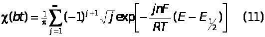 Решение (5) дает зависимость (bt) от bt при данном . Эта функция определяет форму вольтамперных кривых для обратимого процесса. bt связано с потенциалом