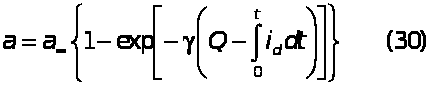 Также было принято предположение о существовании двух энергетических состояний металла на электроде. Первое энергетическое состояние - микрофаза - характерно для малых количеств осадка на электроде. В этом случае его активность а, определяемую общим соотношением