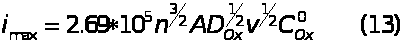 Найденная любым из приведенных способов функция определяет форму вольтамперных кривых в случае обратимого электродного процесса. Уравнение тока пика легко получили на основе уравнения (7) и графика функции (8 - 11). Это выражение известно как уравнение Рендлса - Шевчика: