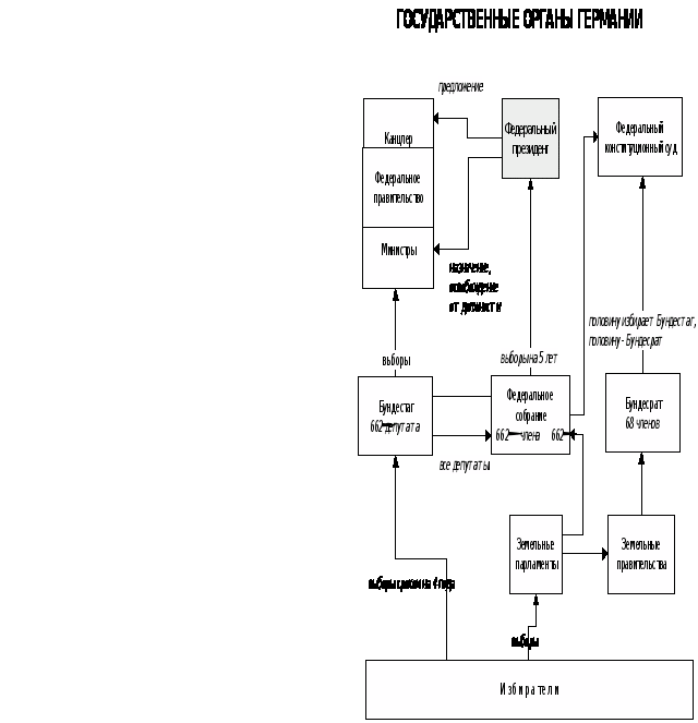 Полномочия президента, его статус в политической жизни той или иной страны определяются прежде всего соответствующими конституционными нормами. В Федеративной Республике Германия конституционное право наделяет исполнительной властью прежде всего главу правительства, а не главу государства – президента. Правда, в конституционном праве ФГГ нет нормы о том, что президент – это глава государства, его статусе в Основном законе говорится только то, что «федеральный президент представляет Федерацию в международно-правовых отношениях»1. В то же время в Основном законе ФРГ чётко обозначен конституционный статус главы правительства – канцлера: «Федеральное правительство состоит из Федерального канцлера и федеральных министров»1. Эта правовая норма прямо указывает на то, что президент не является главой исполнительной власти и таким образом не возникает никакой правовой неопределённости в разграничении полномочий между главой государства и главой правительства.