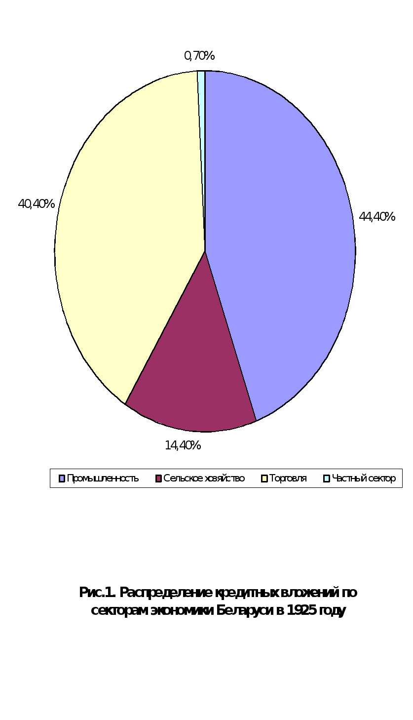 | Распределение кредитных вложений по секторам экономики в 1925 году | ||||||