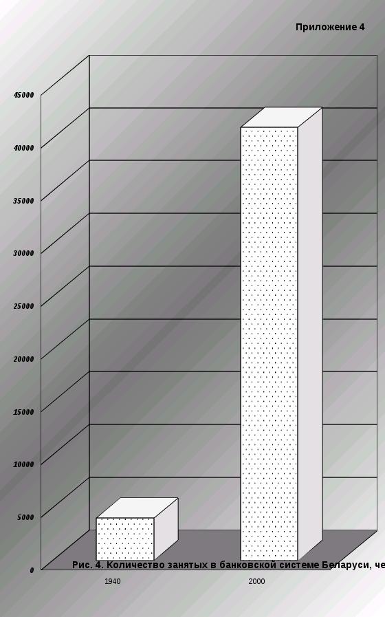 | Количество занятых в банковской системе Беларуси, чел. | 4000 | 41000 |