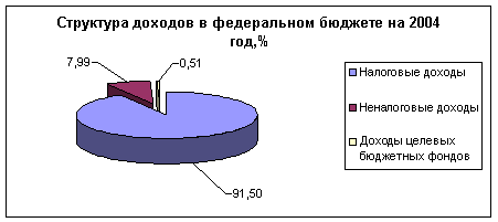 Главной задачей на 2004 год было назначено "повышение благосостояния населения и обеспечение устойчивого роста экономики страны на основе стабильного функционирования и развития бюджетной системы. В связи с этим бюджетная политика должна способствовать повышению качества и доступности бюджетных услуг, формированию благоприятного предпринимательского климата, повышению конкурентоспособности отечественной экономики, сокращению масштабов бедности, обеспечению социальной стабильности на основе одновременного роста доходов работников как государственного, так и частного сектора экономики. При этом бюджетная политика должна быть ориентирована на перспективу, исходить из четкого понимания возможностей федерального бюджета и приоритетов в расходах, обеспечивать предсказуемость условий формирования бюджетов всех уровней. Федеральный бюджет на 2004 год не должен стать заложником предвыборных амбиций, отраслевого лоббизма и заведомо невыполнимых обещаний."1 (Приложения 1,2,3,4)